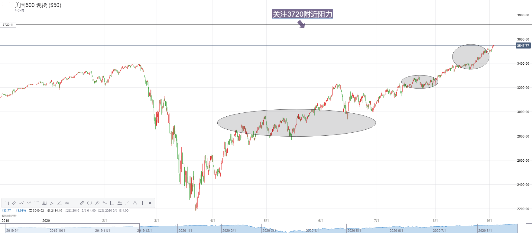 标普500走势分析:上涨短期仍将延续,关注3720附近阻力