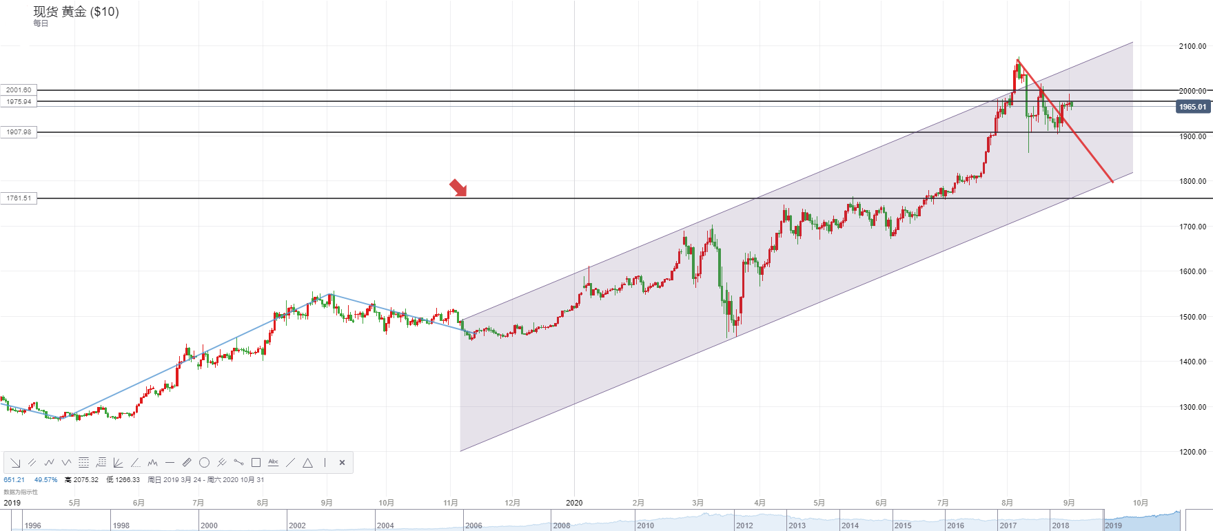 黄金走势分析:大级别下行格局不改,失守1970美元后市料再度承压