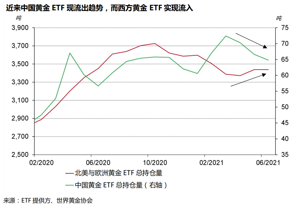 国内黄金的供需变动是境内外黄金价差的基本驱动因素之一,我们对其前景的展望表明,负价差不会持续。随着大宗商品价格持续走高以及经济需求侧的持续复苏,短中期内中国的通胀压力有可能上升,增加中国投资者对黄金作为通胀对冲工具的潜在需求。而进入第三季度后,由于季节性规律、稳定的经济增长以及与节假日相关的黄金消费旺季来临,黄金消费需求也可能会呈现回升趋势。总的来看,需求的回升对境内外黄金价差将起到一定的支撑作用。