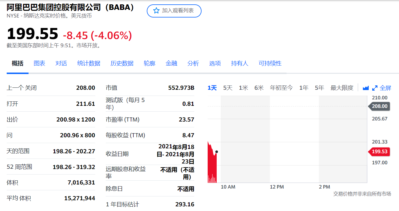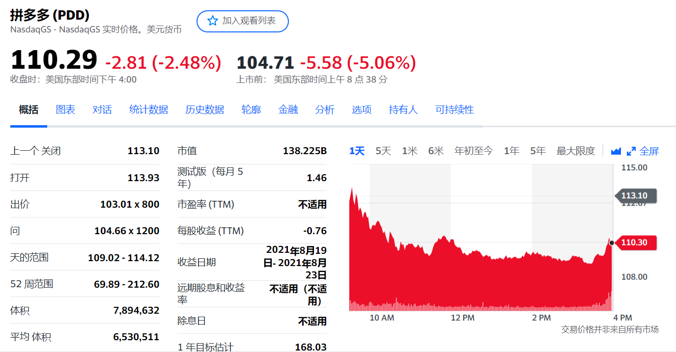 周四,拼多多美盘前跌5.68%;阿里巴巴盘前跌近3%,开盘后跌近4%,股价自去年6月以来首次跌破200美元关口。