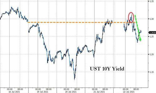 在连续两个交易日自低位大幅反弹后,本周四(7月22日)美债收益率的升势戛然而止。当天公布的美国初请失业金数据表现不佳,帮助美债多头重整旗鼓。而誓言将宽松政策进行到底的欧洲央行,则推动欧债收益率在欧洲央行利率决议后全线下挫,美债收益率也因此承压。