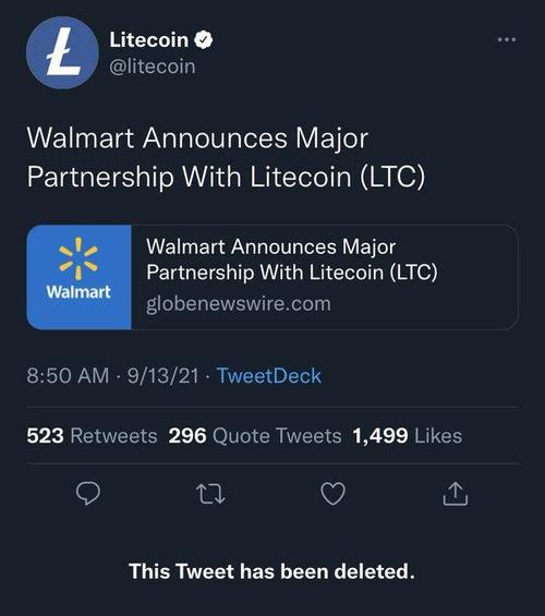 支持莱特币付款?CNBC:沃尔玛证实是假消息