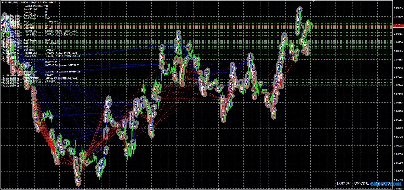 PipMaker是一个很经典的马丁了,单量很多。顺势单和逆势单都做,如果顺势单盈利比较多,会带走一些亏损比较严重的逆势单,这样的操作很不错值得借鉴。