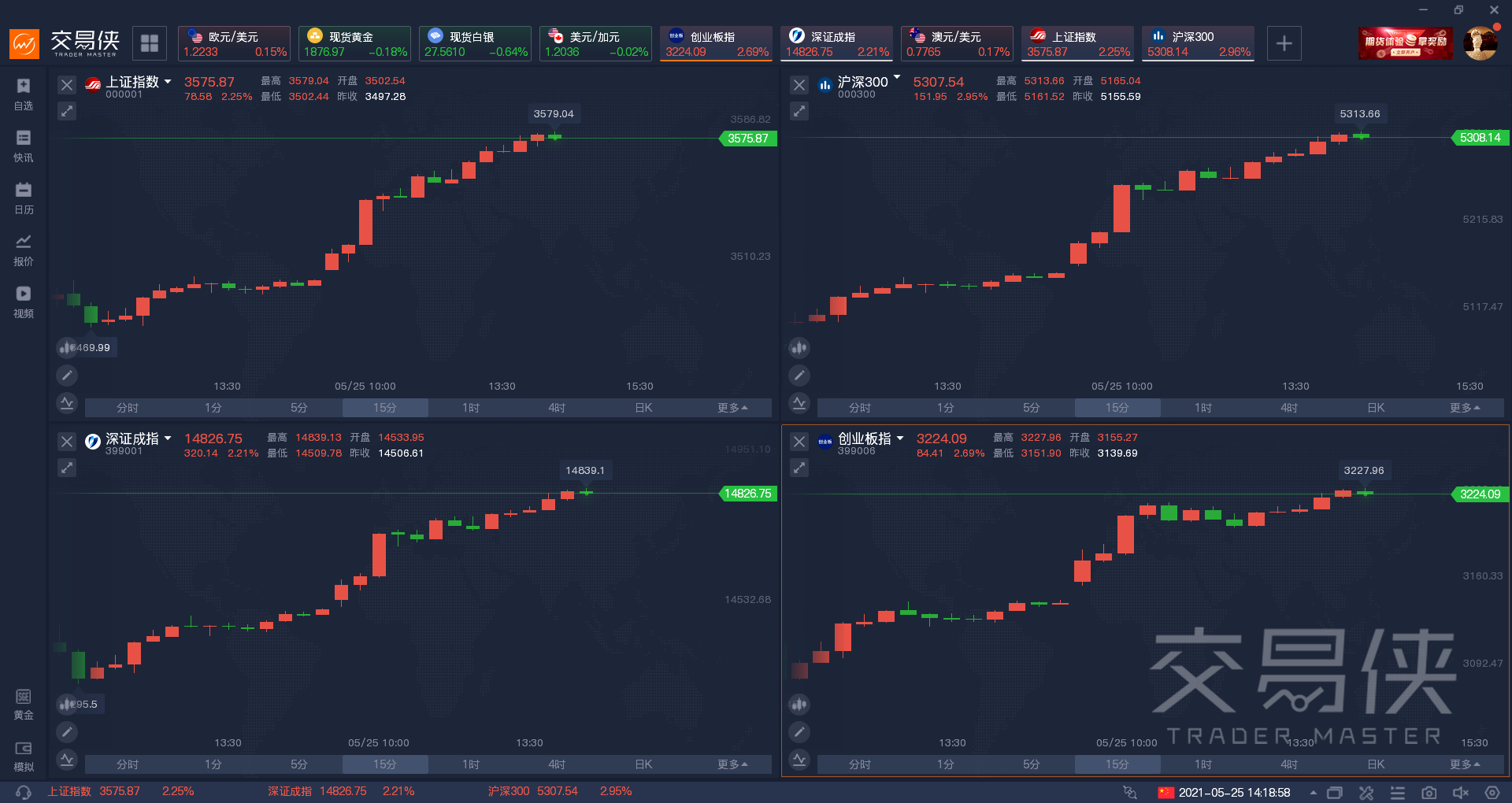 A股再次呈现全面活跃态势,25日上午上证指数一举突破3500点,盘中一度暴涨超过60点,创最近两个多月新高。午后沪深300指数也上破5300点,日内涨3%;深证成指涨幅扩大至2%,创业板指涨2.45%;富时中国A50指数期货涨幅达4%。