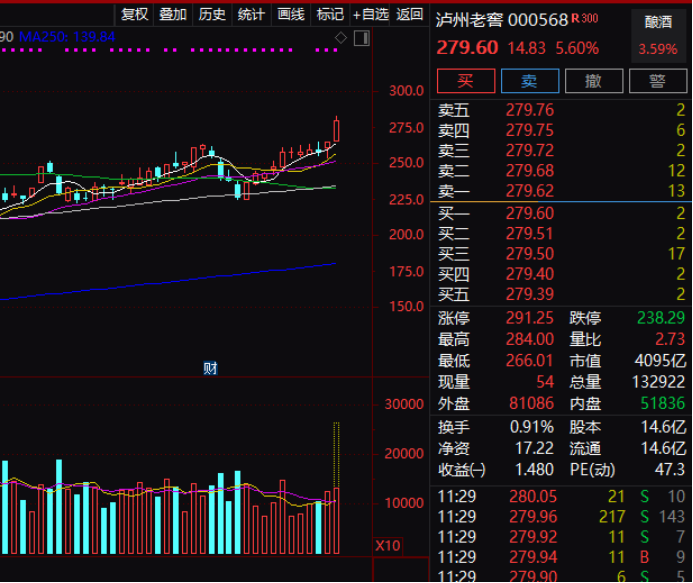 值得注意的是,今天上午最先带动市场上涨的为酿酒板块,且主要集中在白酒大市值龙头股。