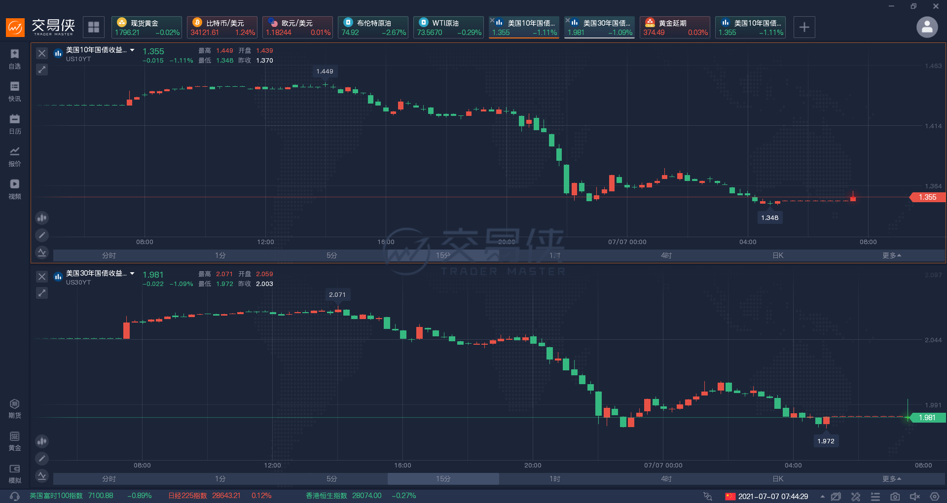 分析认为,由于最新发布的美国6月ISM服务业数据从历史新高回落,远逊于预期,投资者开始押注美国经济复苏趋势逐渐放缓,因而导致长端美债收益率集体大幅下行。