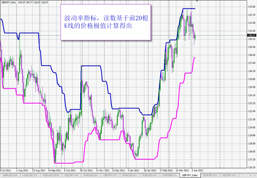 由于唐氏通道专为长期交易设计,其采用20这个数值并非偶然——这是按月平均工作日数计算得出。20根K线的构建周期能最大限度反映其对市场周期性波动的影响。但这个20根K线的周期在小时图交易乃至M5图的快速剥头皮交易中同样有效。时至今日,唐氏通道已被广泛应用于各类趋势交易系统。在更复杂的期权策略中,通道构建周期值通常设定在18至24之间——当同时运用多个唐氏通道时,为获取独立的进出场信号,周期值可扩展至50根或更多K线。